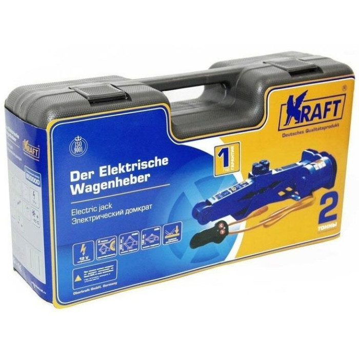 Домкрат электрический Kraft КТ 850000 используется в качестве подъемного механизмма при обслуживании легковых автомобилей до 2000 кг.