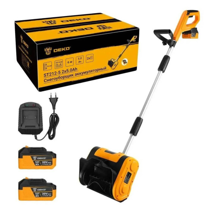 Снегоуборщик аккумуляторный DEKO ST212-5 электрический — это современное, мощное и надежное решение для эффективной уборки снега, которое сочетает в себе передовые технологии и удобство использования. Этот инструмент оснащен двумя мощными 20В аккумулятороми с емкостью 5.0Ач, обеспечивающими длительное время работы и высокую производительность. Благодаря повышенной токоотдаче аккумуляторов, снегоуборщик способен справляться с большими объемами снега, обеспечивая стабильную и надежную работу даже в самых сложных погодных условиях.