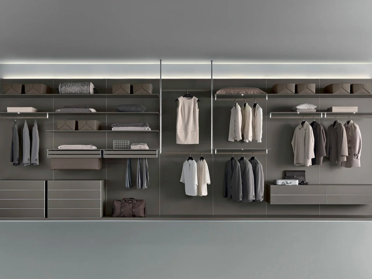 Если габариты прихожей позволяют организовать только небольшую гардеробную, то и количество вещей в ней должно храниться небольшое. Одежду, которой пользуетесь постоянно, разместите на самом видном и доступном месте. Есть смысл развешивать вещи сразу комплектами – чтобы экономить время и нервы по утрам. И никаких блузка на блузке на одних плечиках! Открывая гардеробную, вы должны видеть все актуальные вещи и комбинации.